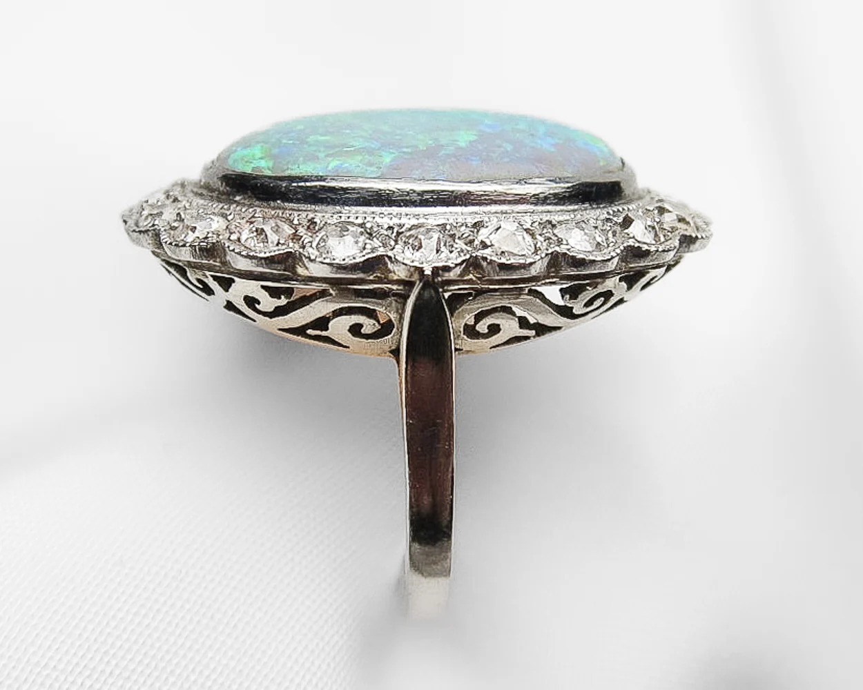 Midcentury French Opal & Diamond Ring